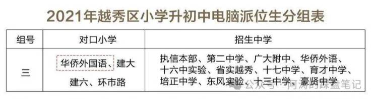 并且,2021年越秀区小升初电脑派位分组中,广州市华侨外国语学校对口执信中学、广州二中、广大附中、育才中学等名校,是越秀区电脑派位至优配置的分组!