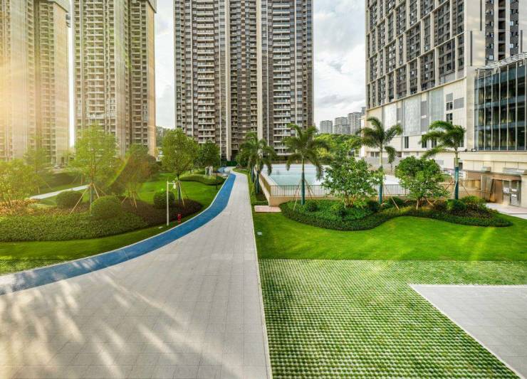 项目由16栋生态叠墅和8栋高层洋房组成,总建面约46万㎡,楼间距约90m,容积率仅2.6,是片区内罕见的低密大盘,有着更宽松开阔的生活空间和绿意盎然的社区环境。