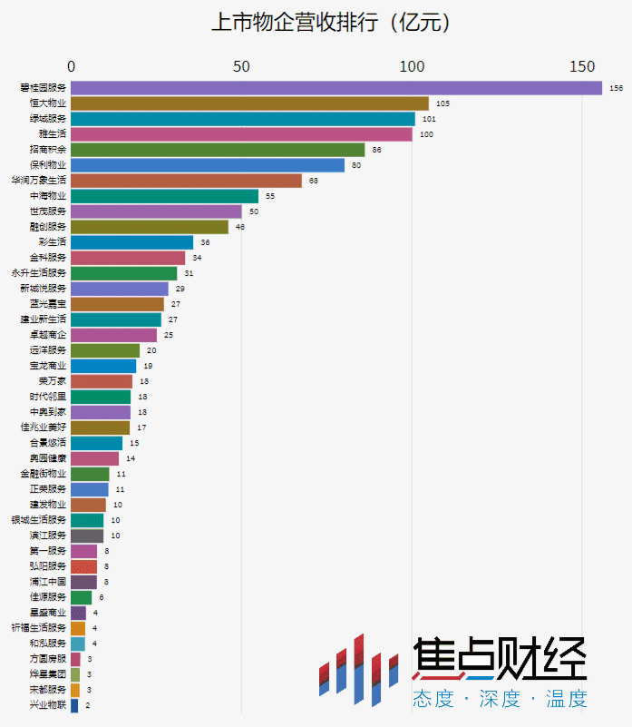 值得一提的是,恒大物业在上市元年即录得逾105亿元的营收,表现不俗,这也是其不断提出要力争站上行业排名前列位目标的底气所在。但目前来看,恒大物业相比碧桂园服务,仍落后了51亿元,这相当于世茂服务去年一年的营收之和。若要实现规模的跃升,恒大物业仍需努力。