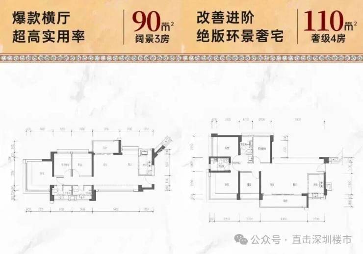 110㎡的4房2厅2卫,设计的是横厅南北通透格局,客餐厅6.1米开间,LDKB一体化设计,五开间朝南,动静分区,4个卧室分别做到了主卧14.3㎡/次卧10.01㎡/次卧9.58㎡/次卧8.16㎡(包含墙体飘窗),L型厨房,公卫三段式干湿分离,得房率78.3%(不含赠送),西南朝向。套内面积86.46㎡+赠送面积19.9㎡=实得面积106.36㎡,加上赠送后得房率96.29%。