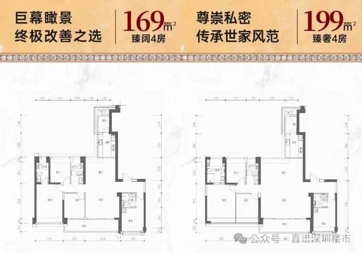 169㎡的4房2厅3卫,设计的是竖厅格局,2梯2户,专梯入户,独立入户玄关,客厅4.65米开间,LDKB一体化设计,四开间朝南,双主卧套间,4个卧室分别做到了主卧18.98㎡/套间12㎡/次卧9.35㎡/次卧9.04㎡(包含墙体飘窗),客厅连接次卧出7.47米长的大阳台,看花园全貌景观,二字型厨房带1个生活阳台,公卫三段式分离,得房率68.58%(不含赠送),正南朝向。