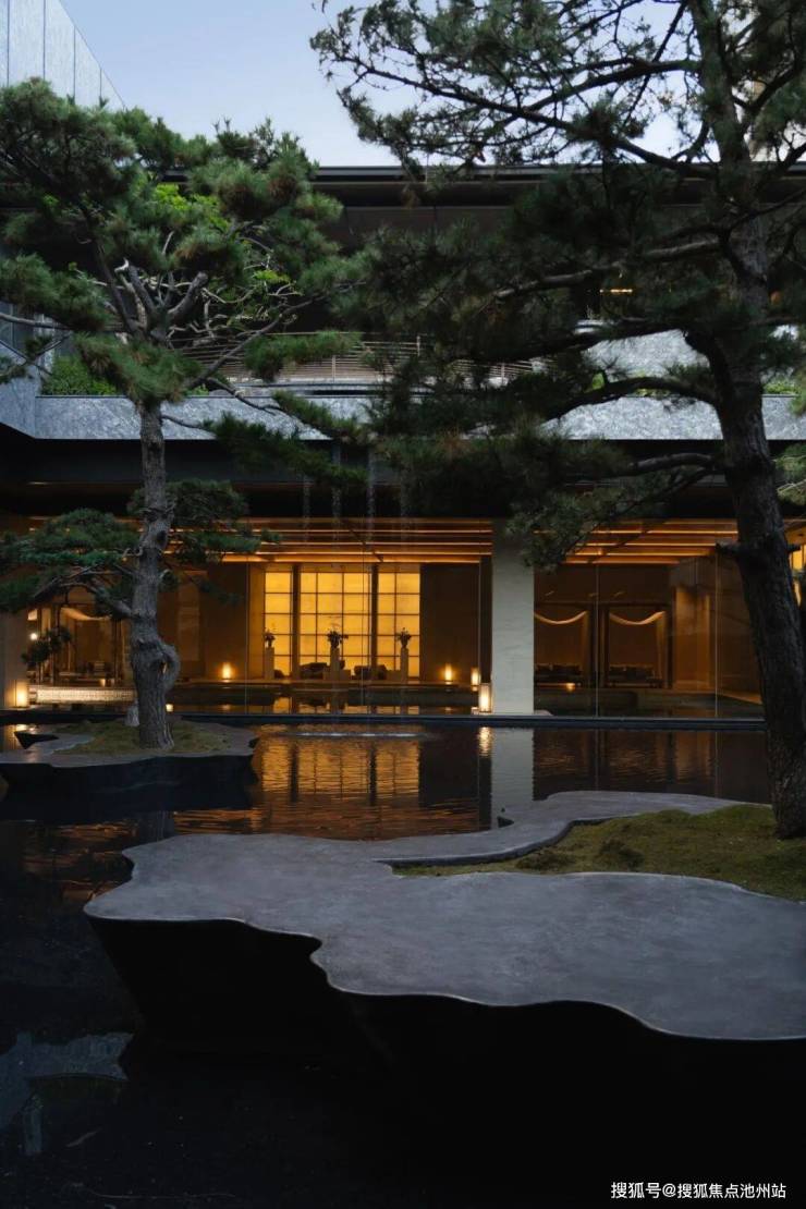 整个建筑外立面更是将现代美学融入。石材+铝板+大面积玻璃的组合,赋予空间前所未有的通透与灵动。就像是一件艺术品,兼具东方韵味和现代质感。