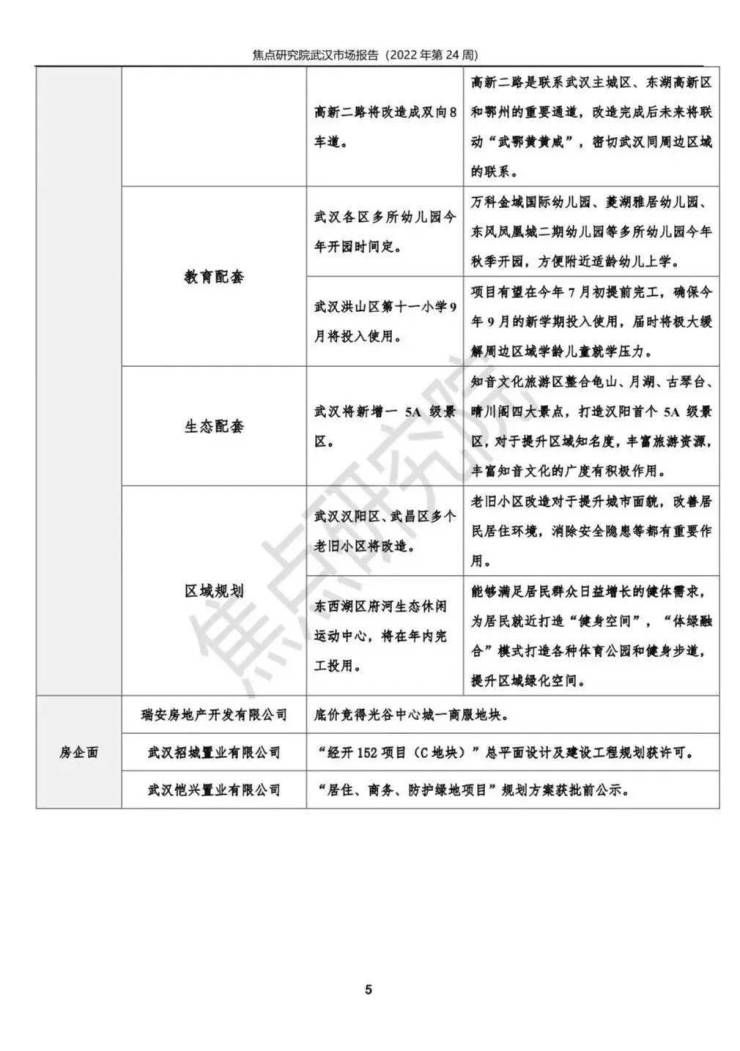 房企方面,瑞安底价竞得光谷中心城一商服地块;武汉招城置业有限公司“经开152项目(C地块)”总平面设计及建设工程规划获许可;武汉恺兴置业有限公司“居住、商务、防护绿地项目”规划方案获批前公示。