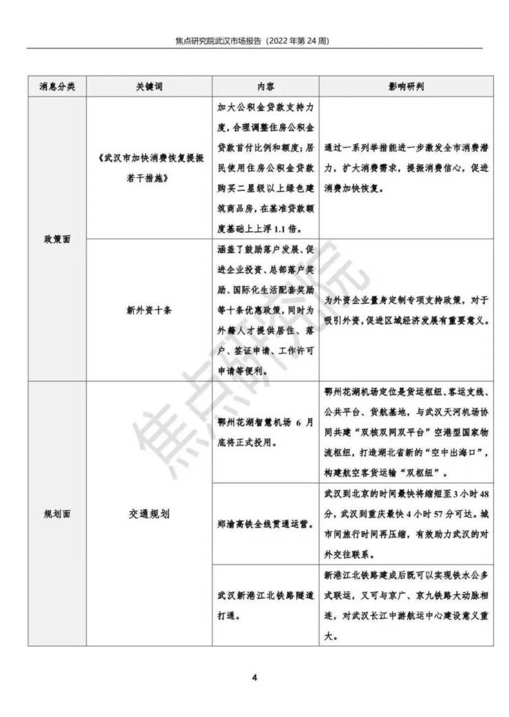 焦点研究院武汉房地产市场周报告报告期:2022年6月13日至6月19日出品时间:2022年6月20日研究员:周玉影市场聚焦(第24周)政策层面,武汉市发布加快消费恢复提振若干措施,加大公积金贷款支持力度;光谷…