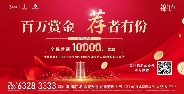 免责声明:本宣传资料仅作为宣传使用,不在任何意义上构成开发商的承诺与要约,具体以政府审定的规划设计文件及双方共同签订的《商品房买卖合同》约定为准。本公司有权对宣传资料修改、调整,敬请留意较新宣传资料。本公司将对本微信公众号内容随时进行更改,更改前不另行通知。部分图片来源于网络,如有侵权,请联系删除。本项目最终解释权归都江堰锦江绿道建设有限责任公司所有。蓉预售字第510181202127305号、蓉预售字第510181202134311号、蓉预售字第510181202141018号。代理公司:成都正合地产顾问股份有限公司。本广告发布时间:2021年10月。
