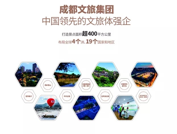 成都文旅集团承担着成都市文化、旅游、体育产业资源整合、建设、运营的重大使命。先后成功的打造了宽窄巷子、西岭雪山、“天府古镇”等系列享誉世界的文化、旅游品牌,累计建设和管理面积超过400平方公里,业务遍及四大州。19个国家和地区,延伸海外市场。