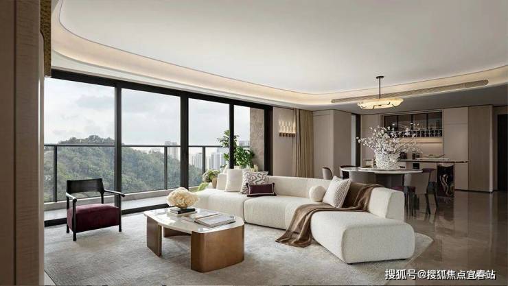 超18m超广角环幕视界,搭配LOW-E玻璃和质感真石漆材质幕墙外立面,如同为居者量身定制的自然画卷,四季园色皆成私藏。