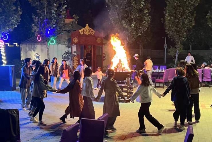 在延庆区石峡关谷园艺小镇的篝火晚会上,游客们载歌载舞。北京市农业农村局供图