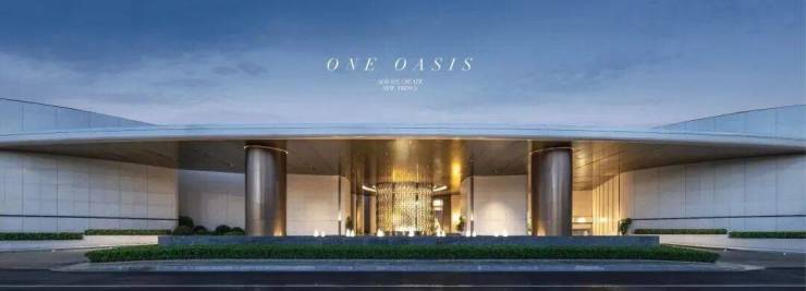 小区大门超60米的恢弘尺度。对标上海前滩华尔道夫酒店国际设计理念,以东方极致对称美学展现一只白鹭的飞翔之势。