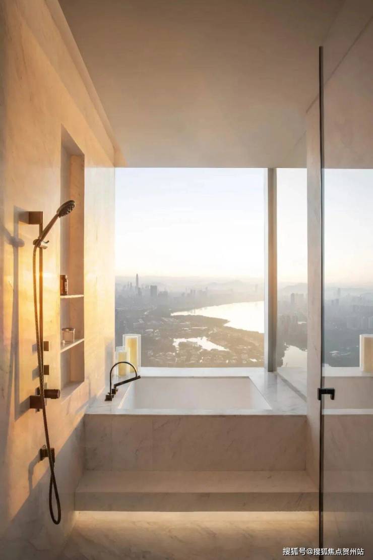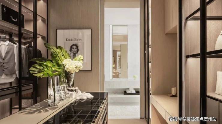 浴缸与休息区共享迷人的城市峡湾景观,白色大理石与镜面设计无现扩大了空间的通透性与流动性。步入式衣帽间复合了储存、展示、收藏和化妆功能,既实用又美观。