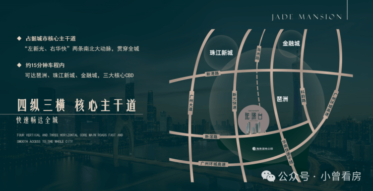 项目占据核心主干道,约15分钟车程内即可到达琶洲、珠江新城、国际金融城三大核心CBD。