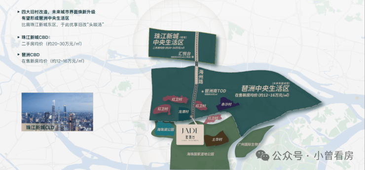 随着四大旧村改造,未来片区城市界面焕新升级,有望形成琶洲南部CLD(中央生活区)。