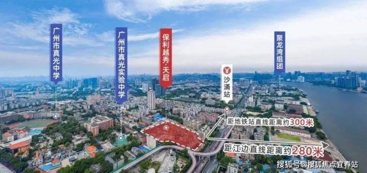 保利越秀天启项目到沙涌地铁站,已经开通的广佛线,直线距离约300米,步行大概450米,就可以1站海珠西。