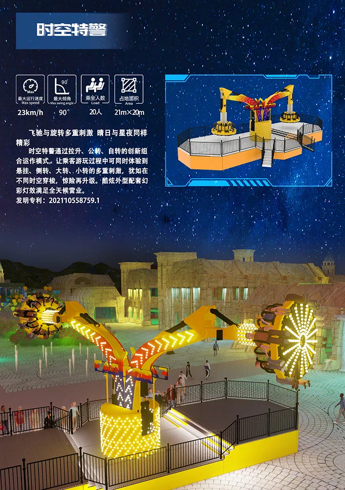 随后在万众期盼的目光中,金马游乐新品发布官先后发布了炫酷过山车、亲子小滑车、逍遥花灯、64自控飞机、时空特警等5款创新产品,并对5款新产品的创新点进行逐一介绍。