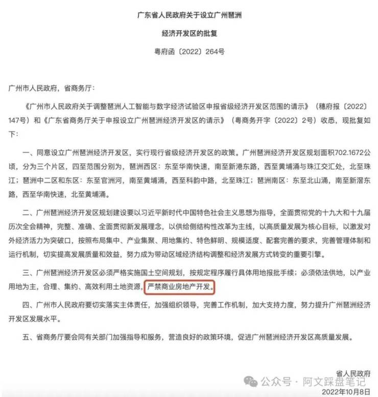 琶洲经济开发区正式获批,《批复》申明琶洲西区严禁商业房地产开发。
