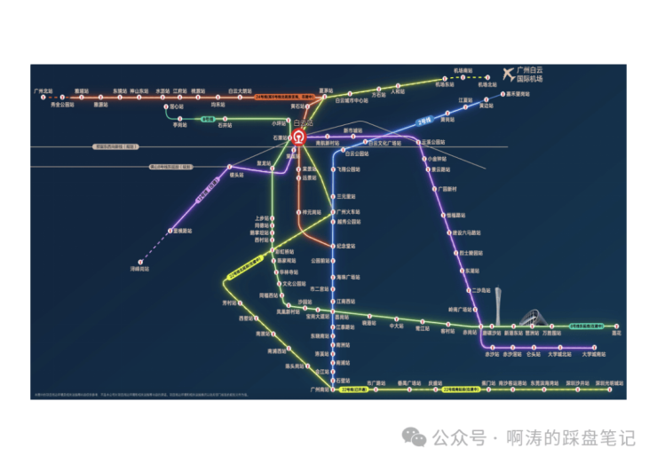 24号线:属于8号线的北延段,从广州北站连接到白云、越秀,终点站纪念堂,通过北站实现空铁联运;