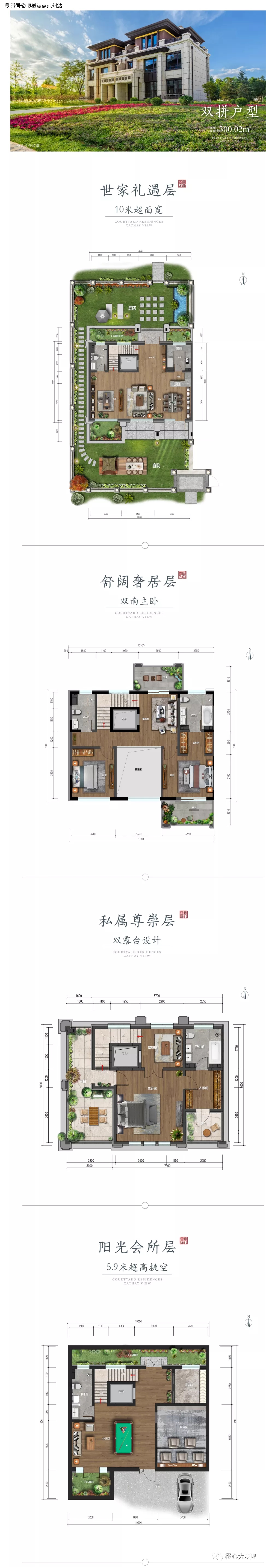 双拼300.02平:950万 赠送150平花园、80平地下室及私家电梯 可售约5套 可看实体房