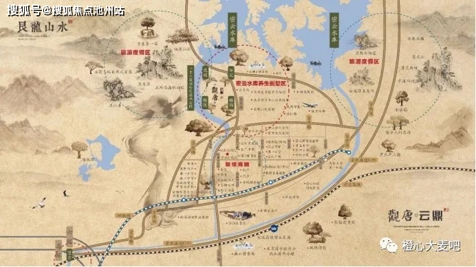 🔥本项目周边三山环抱,有云佛山、云蒙山和燕山,同时四水围绕,有密云水库、京密引水渠、白河和园区内引自白河的水系。