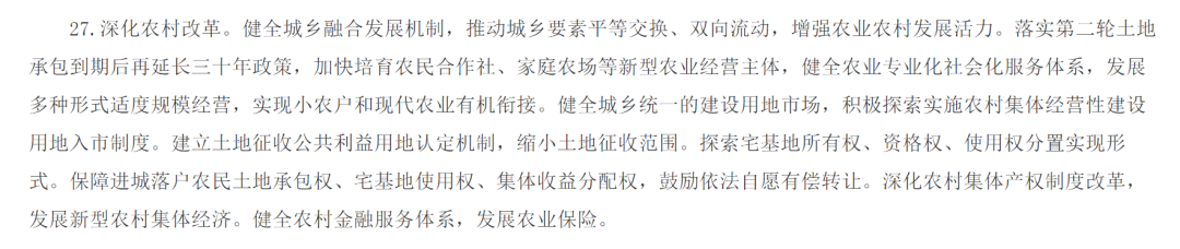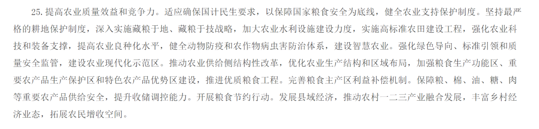。在建议稿的第7部分,讲的是乡村振兴。第7部分是“1+4”结构,“1”是帽段,是一个综合的论述,对“十四五”乃至2035年乡村振兴提出的一些总的要求;“4”是立足“十四五”,提出了乡村振兴的4个重点任务,而且围绕重点任务,提出了一系列的政策措施。