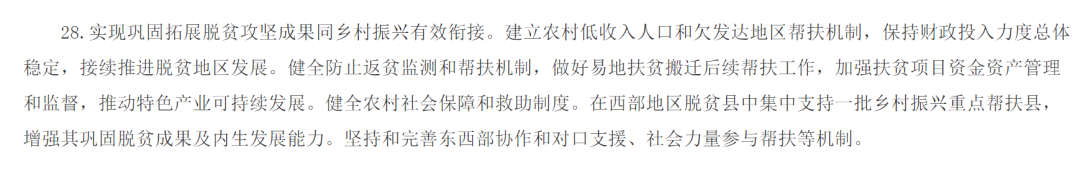4、实现巩固拓展脱贫攻坚成果同乡村振兴有效衔接。