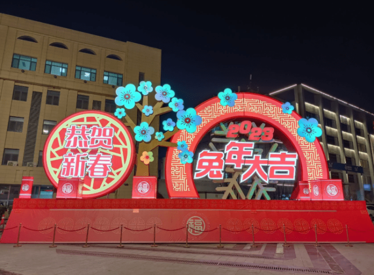 其中,在经开区博大公园内设置的“恭贺新春”景观,结合回字纹、剪纸兔、新年礼盒以及经开区地标建筑造型等元素打造而成,共获得19.5万票,成为最受市民喜爱的春节及元宵节景观布置打卡点。