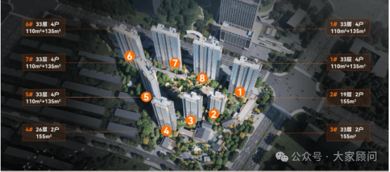 该项目位于东湖高新区佳园路与自主街交汇处,项目总建面151684.42 平,其中住宅建面 90941.04 平,配套商业 1835.19 平,容积率 2.50,规划总户数 810 户。规划有 8 栋 19-33 层的高层住宅。其中 1 号楼 19 层,2、3、5、7、9 号楼均为 33 层高层,6 号楼为 26 层高层。外立面以几何线条与弧形元素相结合,采用亮灰、暖黄等色调为主,呈现海派的建筑风格。小区正中央打造了一片较大的中央景观园林,部分楼栋的间距稍显紧凑。套均面积在 112㎡左右,主力户型为建面约 110㎡(3 房)、建面约 135㎡(4 房)、建面约 155㎡(4 房),整体偏刚改、改善定位。项目离地铁 2、11 号线交汇站点武汉东站不远,步行距离仅 600 多米,交通出行便利。目前部分商业街区落地,预计12 月首开2、3号楼。