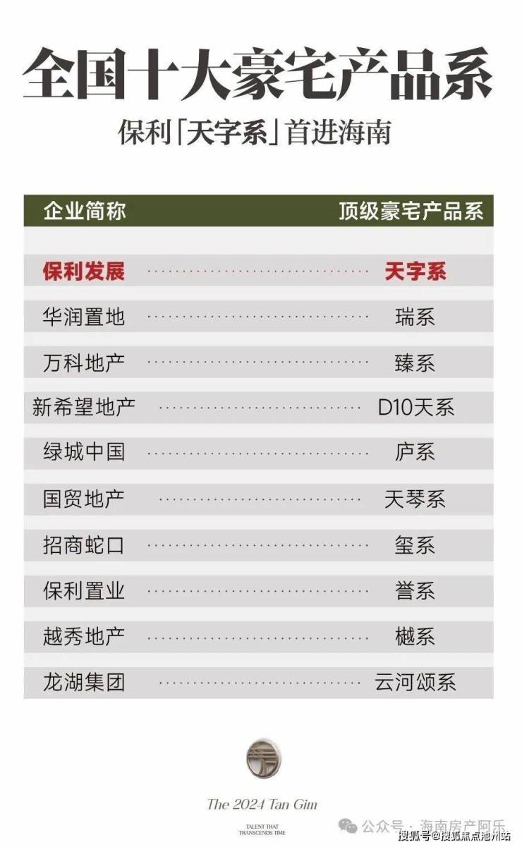 天字系,以客户需求为圆心,根据城市基座,提出“甄选城芯、产品打造、服务配置”三个方面的严苛要求,因而成为保利顶级豪宅产品系。且是全国十大豪宅产品系中首位进入海南的。
