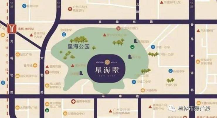 目前位处市桥中心位置,居住氛围浓厚,“衣食住行用”一应俱全,成熟的生活配套就在家门口。公园、学校、医院、酒店以及数之不尽的饮食悠闲娱乐项目,在这里保留着最原味广州的生活方式。星海公园:星海 公园占地70多亩,是番禺区人民为了纪念人民音乐家冼星海而建,在项目北门旁边。