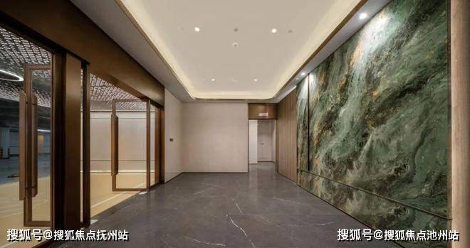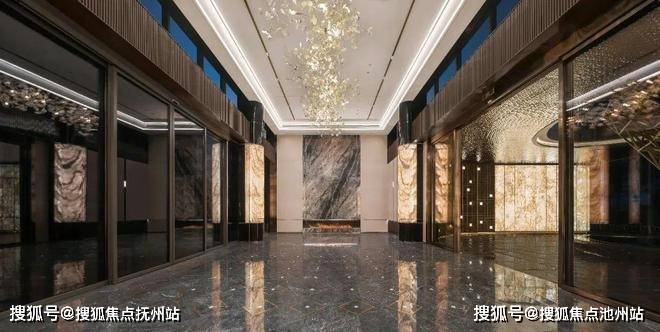比如精装的地下大堂,流淌着雅奢的艺术感,搭配高奢石的景墙,堪比星级酒店,带给业主归家的尊贵感。