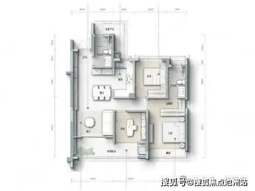 105㎡(A1户型):入门级刚需户型,独立玄关+800库收纳系统,S型墙体实现嵌入式冰箱,南向双卧带飘窗,主卧配独立卫浴与衣帽间,小空间兼顾功能与仪式感2。