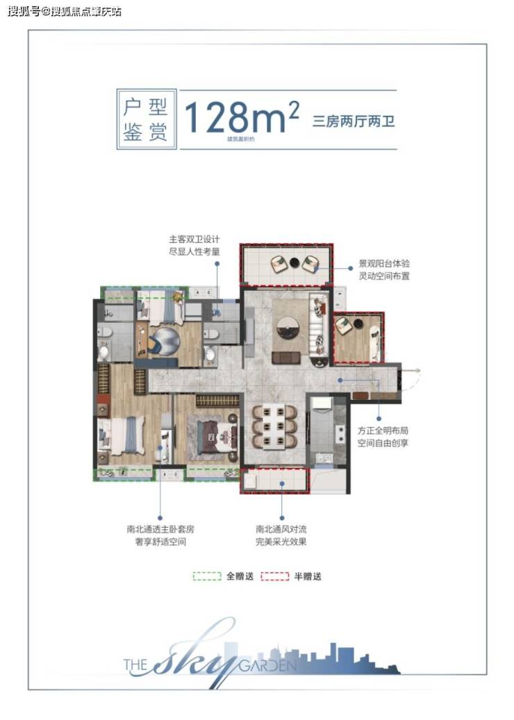 3+1房2厅2卫,建筑面积约:128㎡↑