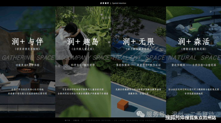 景观设计上,特邀纬图设计创始合伙人、设计总裁李卉,循迹江水文化为灵感,将森系造景手法与当代园林相结合,勾勒都市生活绿岛。 在近4.7万方的园林中,规划三重润心归家体系,打造以“润+与伴”、“润+趣岛”、“润+无限”、“润+森活”四大模块为主题的十二重森系园境。