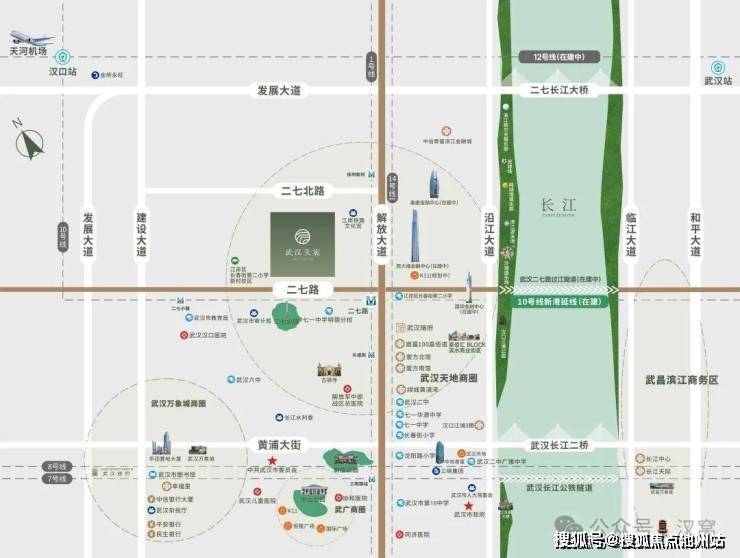地段稀缺,配套顶配:项目坐落在汉口二环内的二七滨江商务区,这里是武汉公认的“顶豪聚集区”。周边配套堪称豪华:商业方面,武汉天地壹方北馆、周大福金融中心等高端商业环伺;医疗资源有同济、协和等顶尖三甲医院保驾护航;教育方面,长春街小学、七一中学等名校也在不远处。