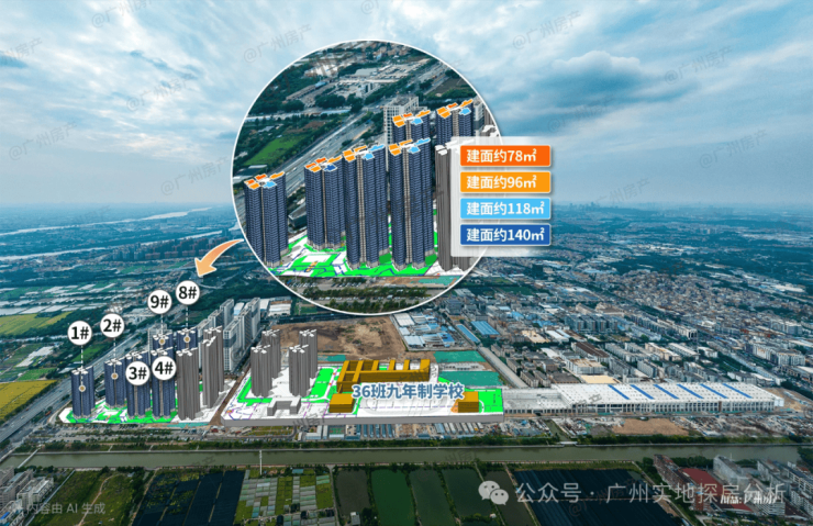项目配建一所幼儿园和一所36班九年一贯制广外附学校,已签约并封顶,预计2026年开学。学校采用“全人教育”理念,硬件设施完善,可实现“目送式”上学。周边还有石碁小学、石碁中学。