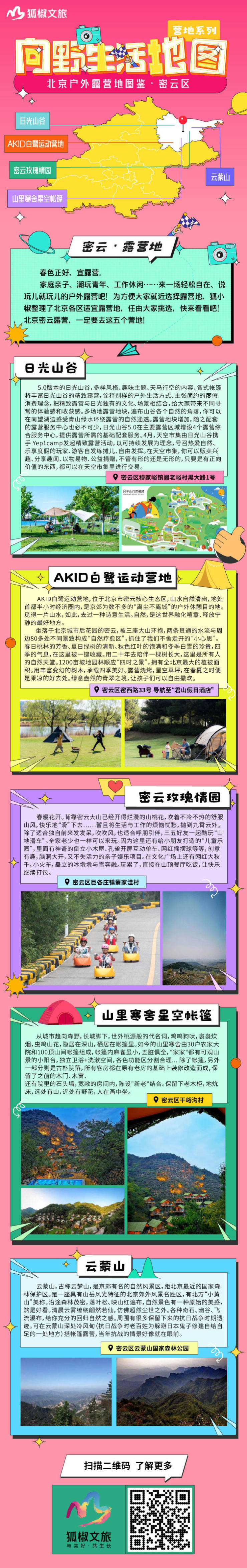 春色正好,宜露营。家庭亲子、潮玩青年、工作休闲……来一场轻松自在、说完就玩的户外露营吧!为方便大家就近选择露营地,狐小椒整理了北京各区适宜露营地,任由大家挑选,快来看看吧!