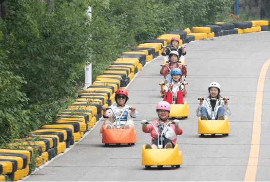 春暖花开。背靠密云大山已经开得烂漫的山桃花,吹着不冷不热的舒服山风,快乐地“滑”下去……暂且将生活与工作的烦恼忧愁,抛到九霄云外。除了适合独自前来发发呆,吹吹风,也适合呼朋引伴,三五好友一起酷玩“山地滑车”。全家老少也一样可以来玩。因为这里还有给小朋友打造的“儿童乐园”,里面有神奇的倒立小木屋、孔雀开屏互动单车、网红摇摆球等等,创意有趣,脑洞大开,又不失活力的亲子娱乐项目。在文化广场上还有网红大秋千,小火车,矗立的冰墩墩与雪容融。玩累了,直接在山顶餐厅吃饭,让快乐继续打包。