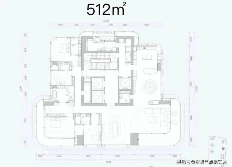 其中211㎡带尺寸图暂未出炉,218-510㎡的官方带尺寸户型图如下: