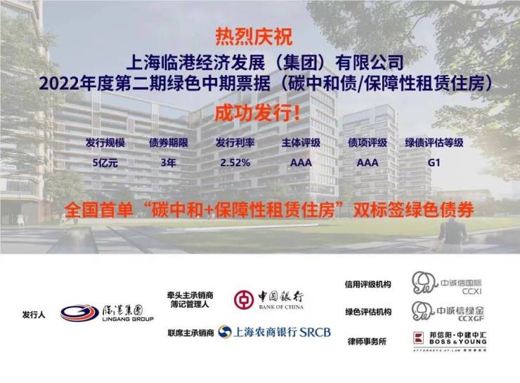 据悉,债券发行规模为5亿元,发行票面利率2.52%,是全国首单"保障性租赁住房+碳中和"双标签绿色债券,将为临港新片区实体经济的低碳发展注入"金"久不衰的资本动力。