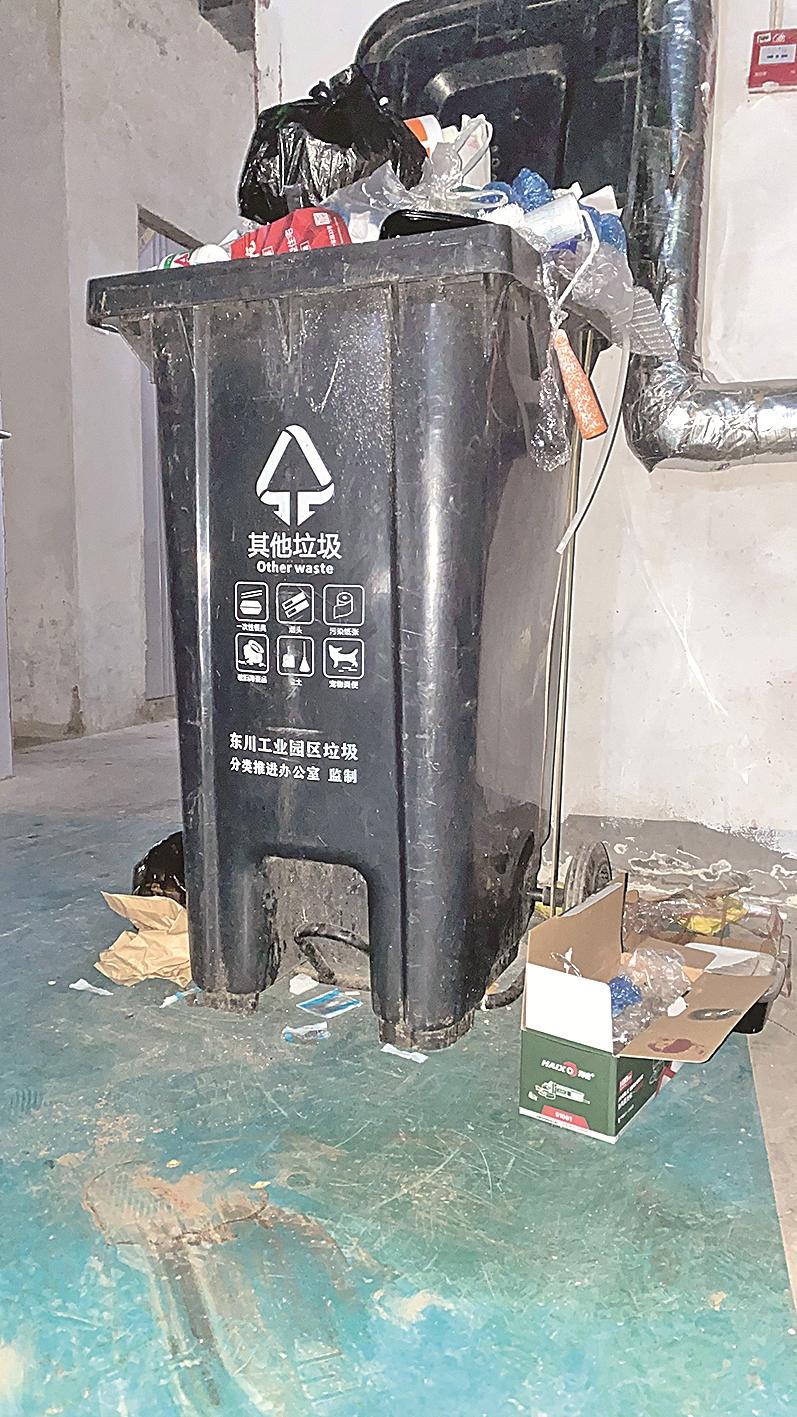 当日9时30分,在翠雍天地小区看到,部分路面留有垃圾,小区最西侧的一条主路上,一个残破纸箱竖在垃圾箱旁边,地上堆着塑料袋、烂菜叶等垃圾。