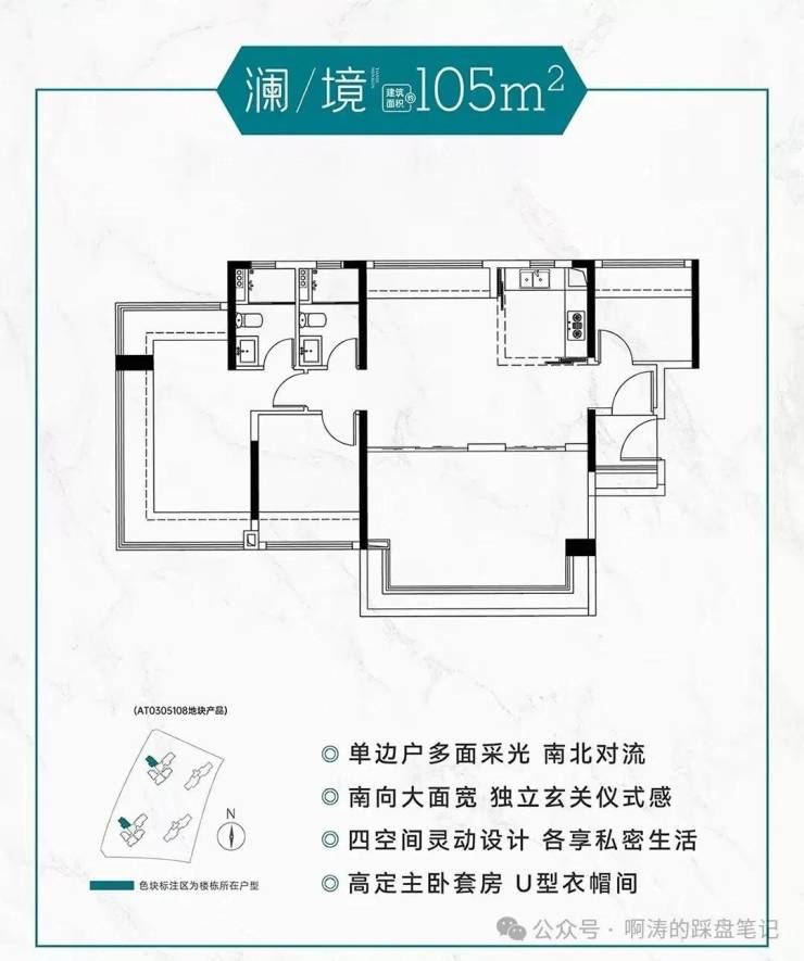 南北对流,主卧超享U型衣帽间