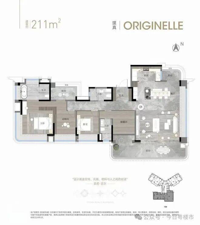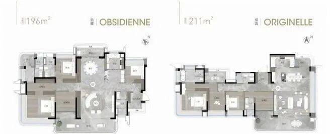 建面约196平方米和211平方米户型:南北对流,LDKB大方厅,双主套,主卧L型270度飘窗,空间体验极佳。