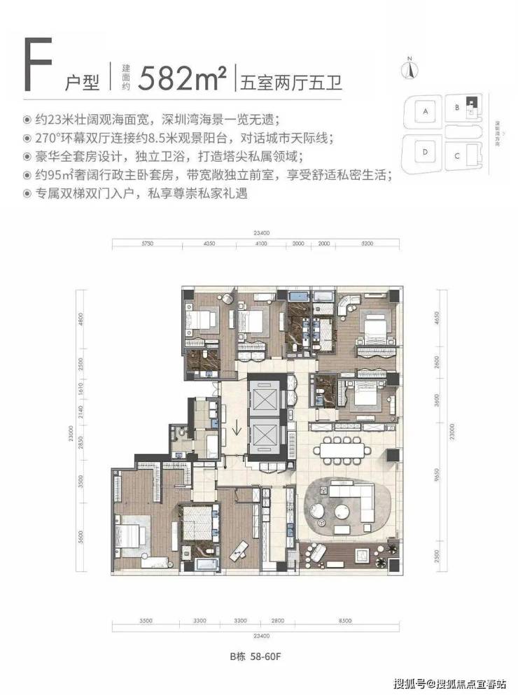 约340㎡4房2厅4卫(约23米观海面宽,海景、湾景、城市景观一览无余)