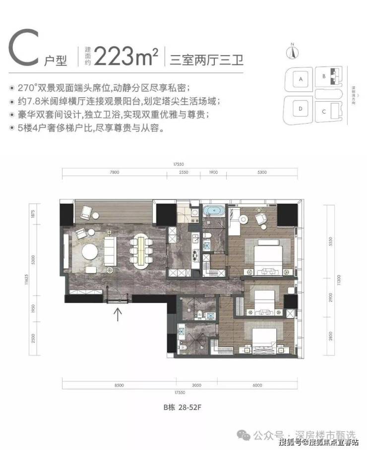 约223㎡3房2厅3卫(约7.8米阔绰横厅链接景观阳台)