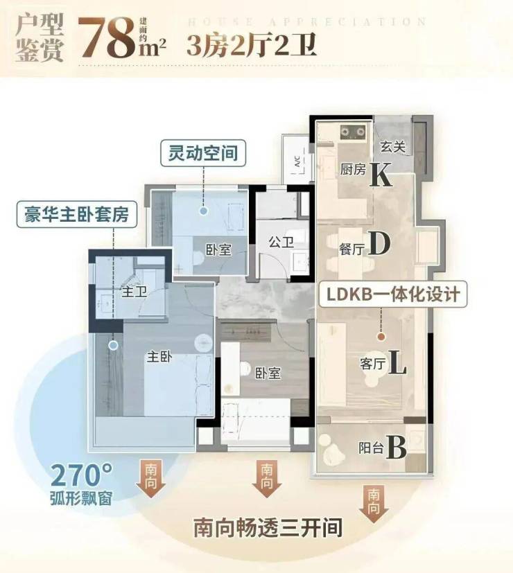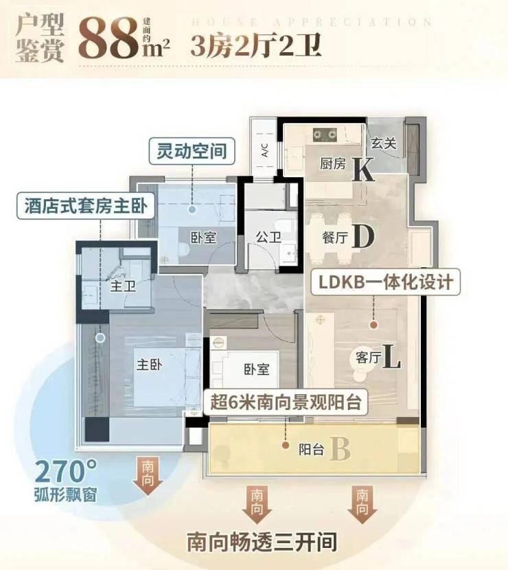 阳台、飘窗、花池赠送,户型使用率超100%;