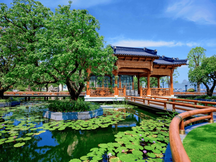 星河湾·半岛五號位于广州市番禺区洛溪岛东端,三面环江,占地面积41万㎡,可售建筑面积31.9万㎡、配套面积37226㎡,容积率2.83,绿化率39%。