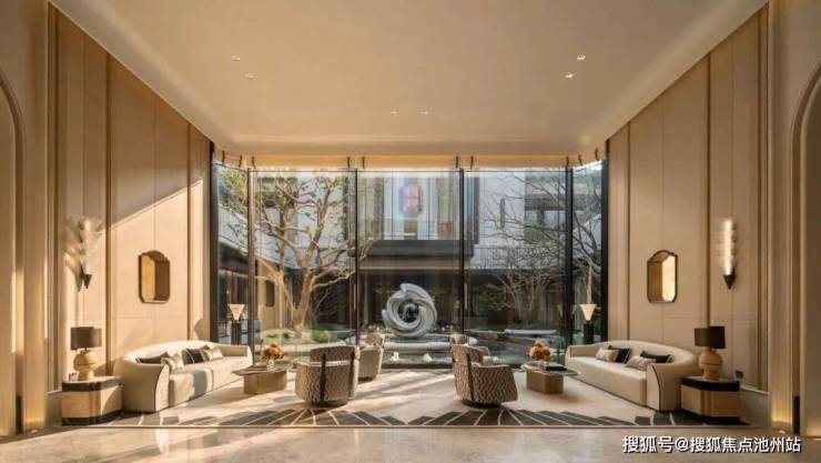 约76米超宽尺度的双子门庭与约9.4米挑空,构成了归家的第一重仪式。