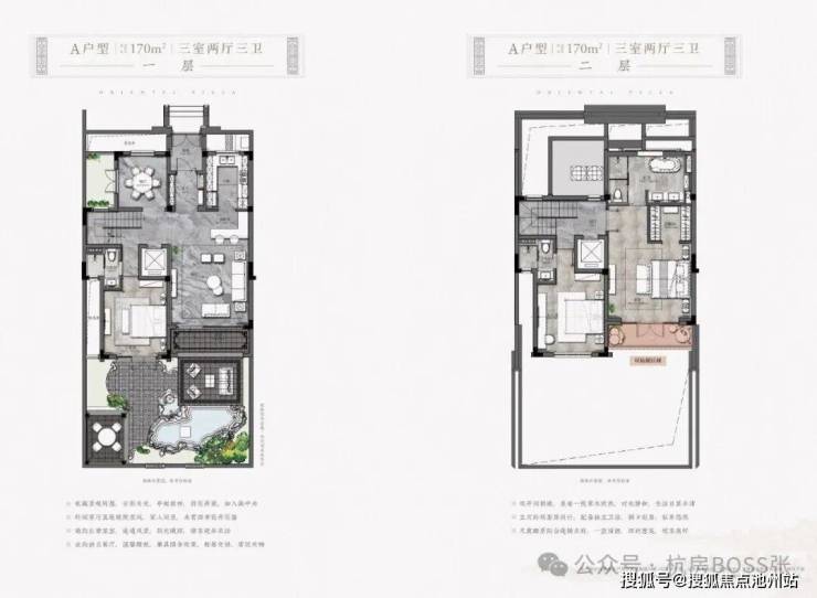 •联合GOA大象设计公司(原绿城东方设计院的凌建先生的团队),通过降低建筑密度和容积率(容积率为0.614,建筑密度30%,以中式建筑中的江南民居形态创作出特有的两层合院产品)。