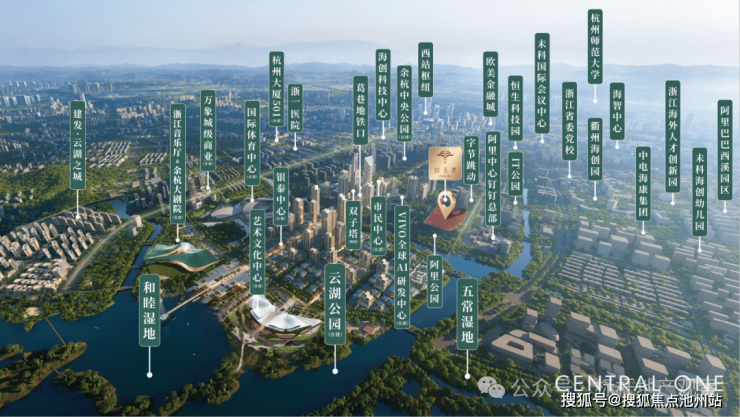 元序所在地块是未来科技城自出让以来,地段最佳一宗宅地,集结了文体地标、百亿商圈、科创总部、公园河景等城市资源。北侧为字节华东中心(刚投入运营),西侧为VIVO全球AI研发中心(在建,幕墙基本完成),西北侧为钉钉总部(已运营),南侧为河道和沿河阿里公园。