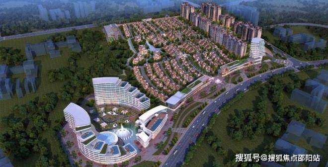 项目分为三大片区。北面为10栋8-13层的小高层住宅区,南面为低层别墅。东面为沿街商业、星级酒店。另外,以景观水系及中心广场为主轴线,两侧伴有公园式景观,水系环绕,户户有景。园林采取新中式风格,步行栈道环绕。社区道路便捷合理。主入口设在东侧、北侧,次入口在西侧,东侧另有别墅的独立车行入口,另酒店、住宅、步行街均有车行入口