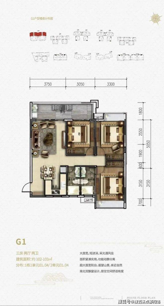 1#户型建面102㎡-105㎡